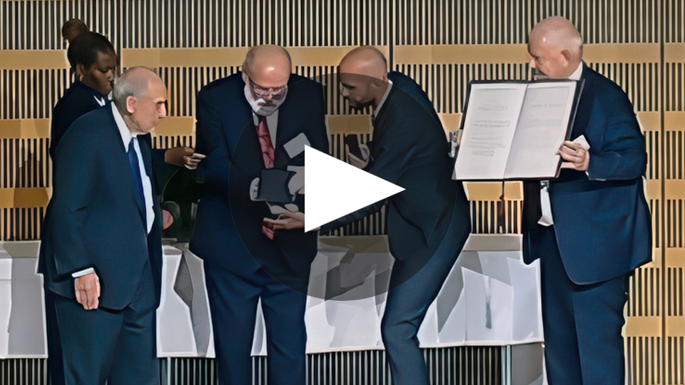 Die Carl Friedrich von Weizsäcker-Gesellschaften Deutschland, Österreich, Schweiz mit der Verleihung der C. F. v. Weizsäcker-Medaille an Joseph E. Stiglitz.
